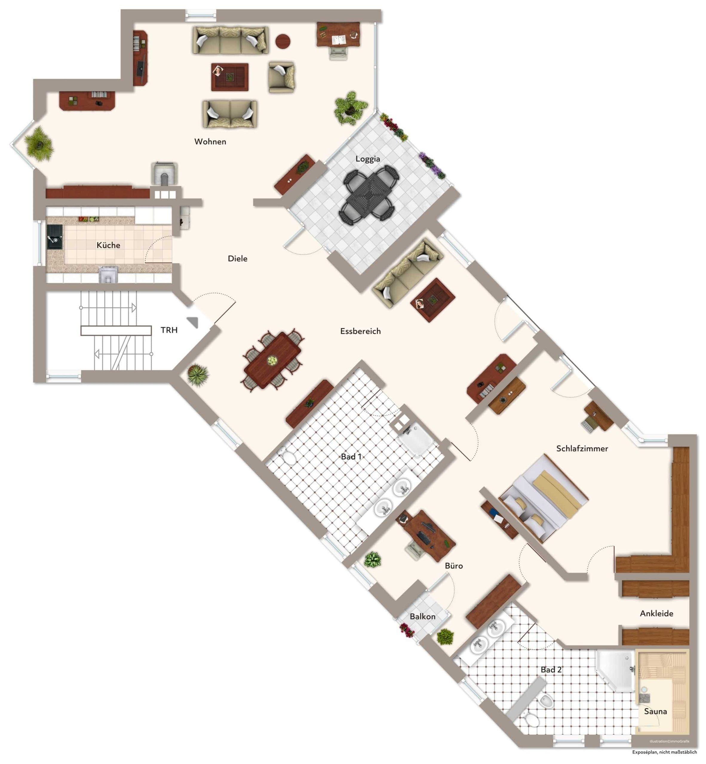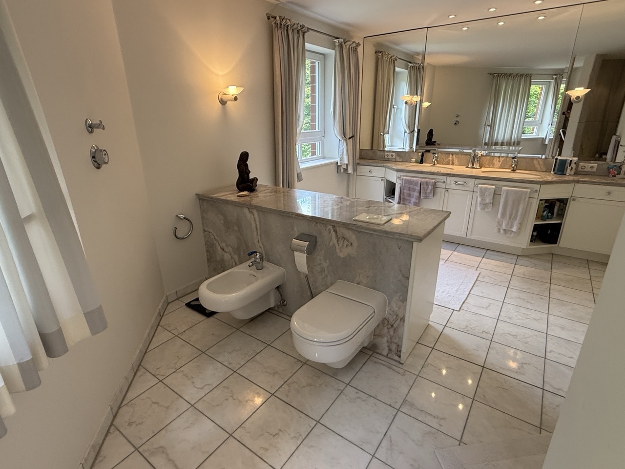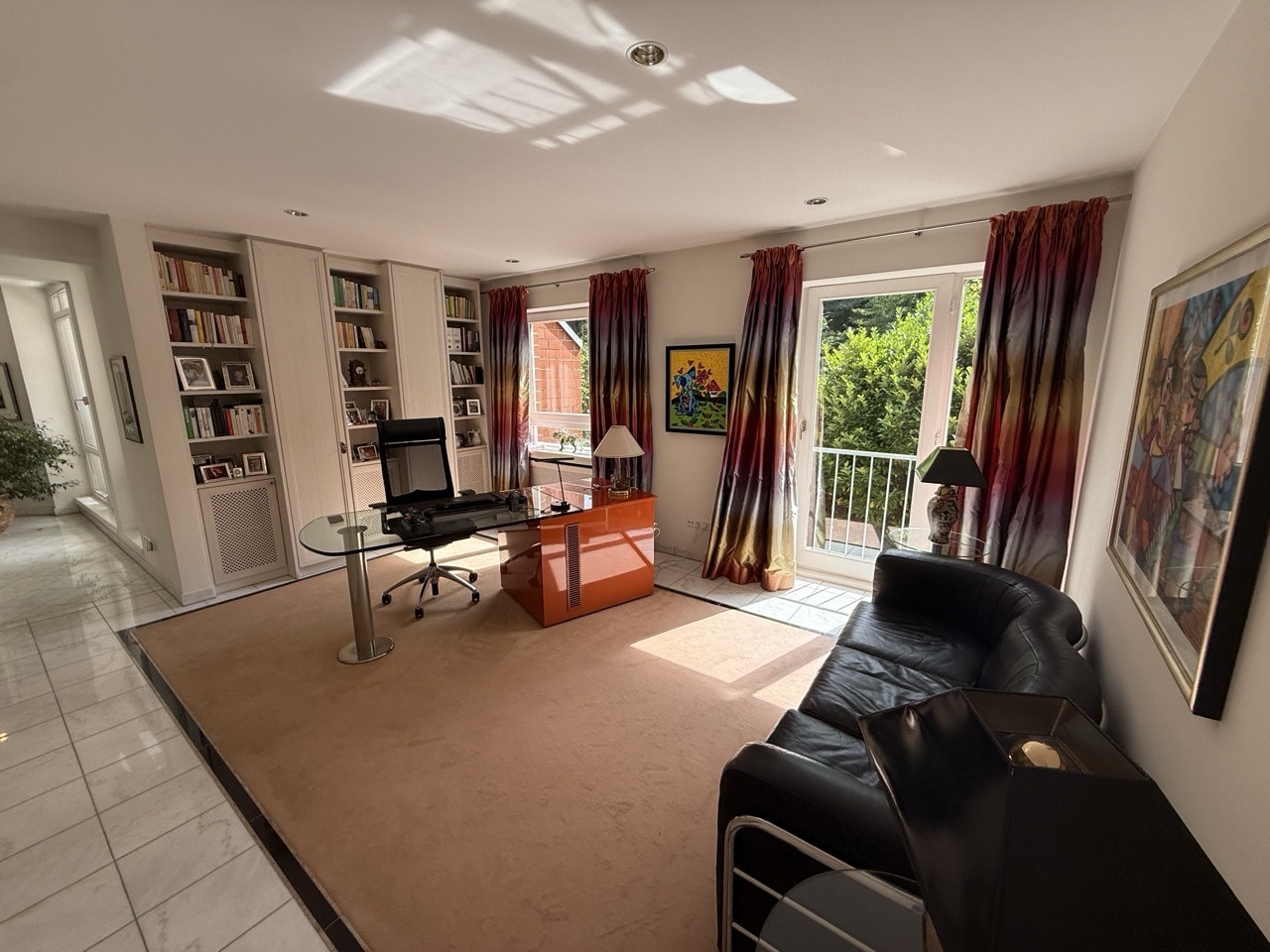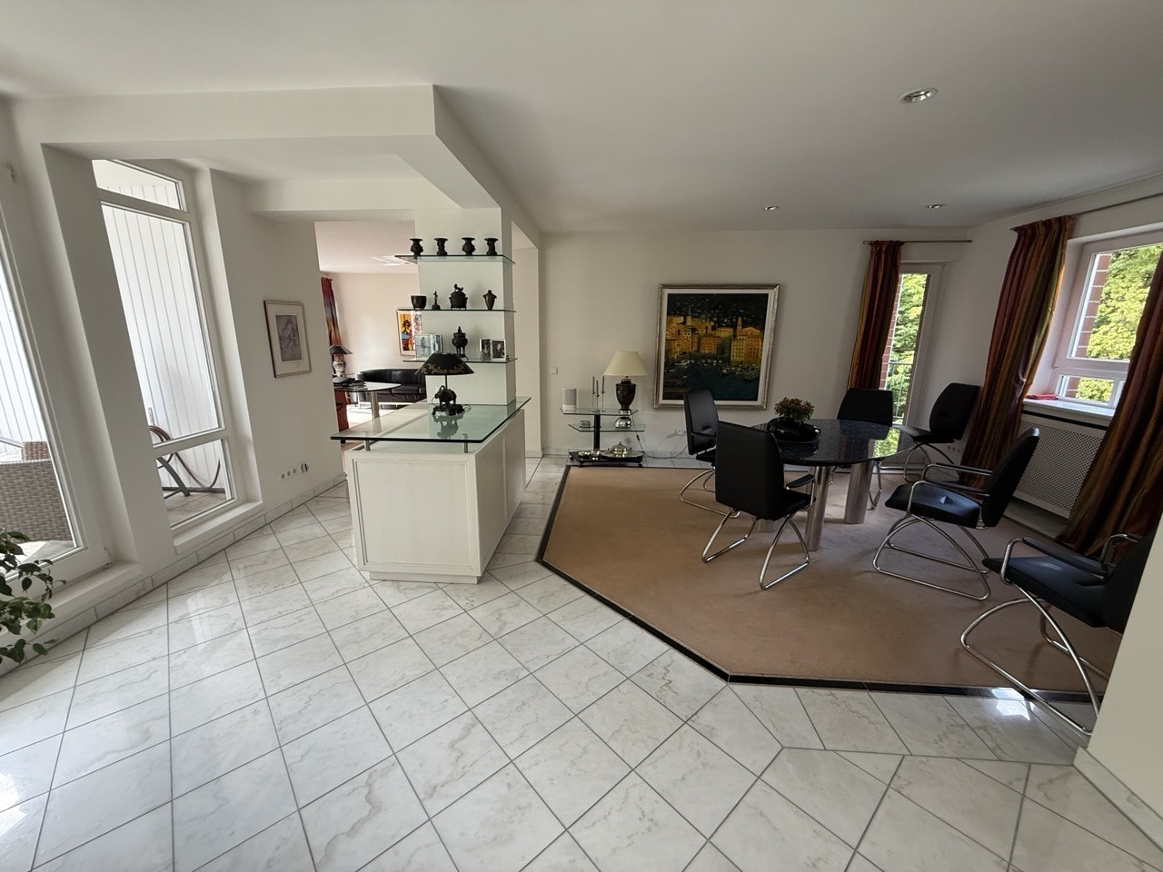 Schwärmerei ist nicht übertrieben bei dieser außergewöhnlichen Wohnung, deren Nobelesse so selbstverständlich daherkommt. Im Jahr 1983 erbaut wurde die Wohnung im 1. Obergeschoss 2000 komplett umgebaut. Wer hier hereinkommt, erlebt ein großzügiges Ambiente mit einer Wohnfläche von rund 216 m², welches Bewohnern und Gäste durch seinen weitläufigen, offenen Wohn- und Essbereich ein Gefühl von Weite vermittelt. Die Raumaufteilung? einfach generös. Neben Schlafzimmer und Arbeitszimmer sind noch 2 Bäder, Ankleidezimmer als auch eine Sauna vorhanden. Durch geringe Umbaumaßnahmen sind zwei weitere, abgeschlossene Zimmer möglich. Die Innenausstattung punktet mit seiner hochwertigen Aufmachung. Vom Essbereich geht es auf die Loggia: groß genug für einen Sommerempfang unter freiem Himmel. 3 Tiefgaragenstellplätze gehören ebenfalls zu diesem Angebot. Die Wohnung wird frei zum Juli 2026 (Exposé 10518)