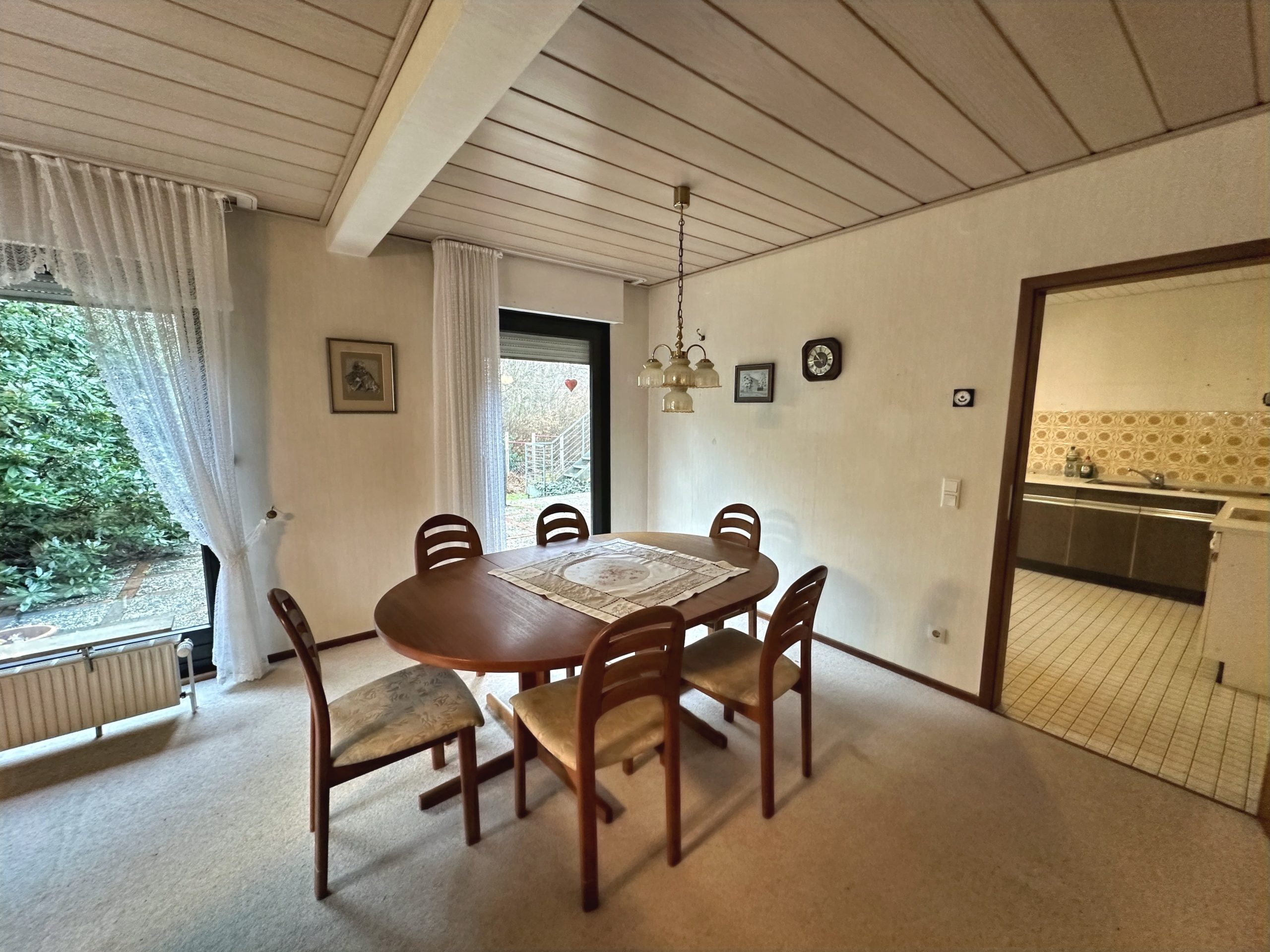 Sie suchen ein gepflegtes Domizil in sehr ruhiger Lage fernab des Stadtlärms? Dann ist dieser in 1976 erbaute Bungalow (Fertigbauweise STREIF) genau das Richtige für Sie! Umgeben von einem 560 m² großen Grundstück mit einem nicht einsehbaren Garten und wundervollem Blick in den schönen Waldrand. Von hier aus können Sie direkt mit Ihrem Spaziergang ins Grüne starten. Wohnen Sie bequem auf einer Ebene mit praktischer Raumaufteilung. Die gesamte Wohnfläche von 114 m² verteilt sich auf ein Wohnzimmer mit gemütlicher Essecke und Ausgang zur schönen, teilüberdachten Terrasse, ein Schlafzimmer, Kinderzimmer, Küche, Bad mit Wanne, Gäste-WC und die Diele mit Abstellraum. Ausgestattet mit einer Gasbrennwerttherme (2018), isolierten Holzfenstern und einem Vollkeller mit Duschbad. Eine Außentreppe zum begrüntem Dach ist ebenfalls vorhanden. Ihr Pkw parkt bequem in der Garage direkt neben dem Haus oder auf dem Stellplatz davor. Die Immobilie steht für Ihre Wohnträume bereits frei! (10640)